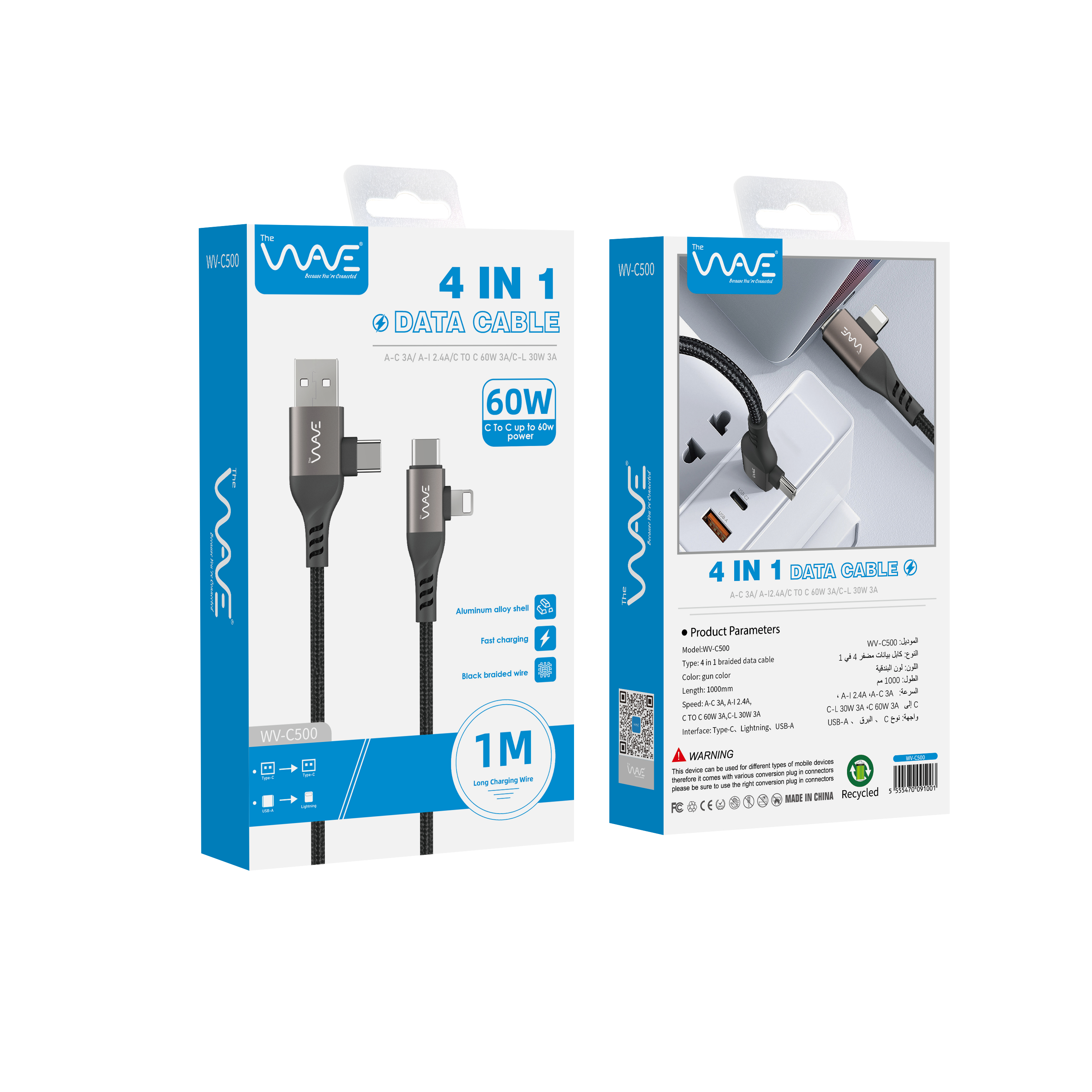 با کابل ۴ در ۱ ویو مدل C500، دیگر نیازی به چند کابل ندارید! این کابل با روکش بسیار مقاوم و دو پین همزمان، اتصال ایمن و سریع را برای تمام دستگاههایتان فراهم میکند. دوام بالا و کارایی بینظیر آن، انتخابی هوشمندانه برای زندگی دیجیتال شماست. همین حالا خرید کنید و از راحتی و کارایی لذت ببرید!