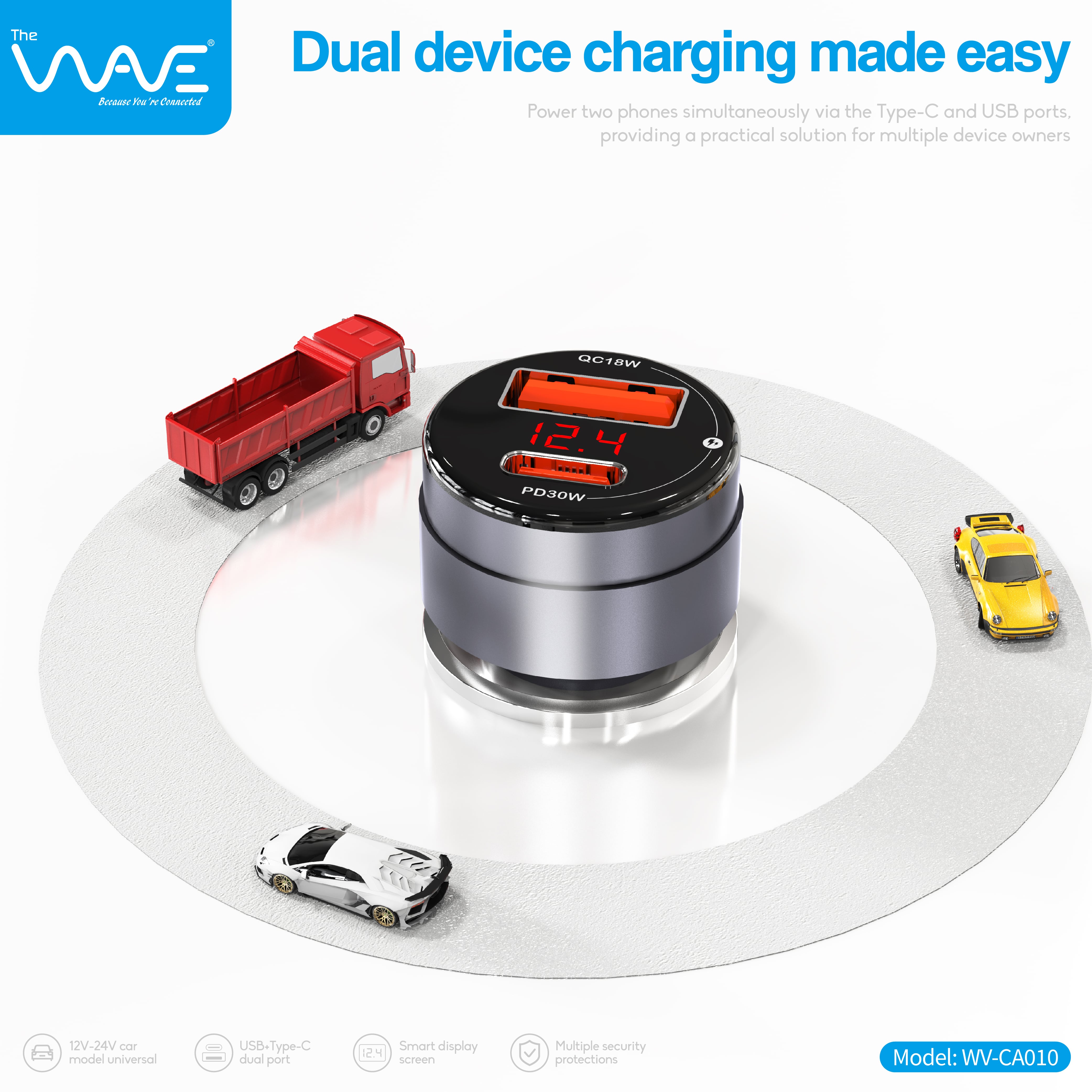 با شارژر فندکی ویو مدل CA010، دستگاههای خود را با سرعتی برقآسا و ایمن شارژ کنید! با پشتیبانی از فناوریهای پیشرفته PD ۳۰ وات و QC ۱۸ وات، هر سفری را بدون نگرانی از افت شارژ به پایان برسانید. طراحی کمحجم و شیک آن، همراهی ایدهآل برای خودروی شما خواهد بود. همین حالا تهیه کنید و همیشه در حرکت بمانید!